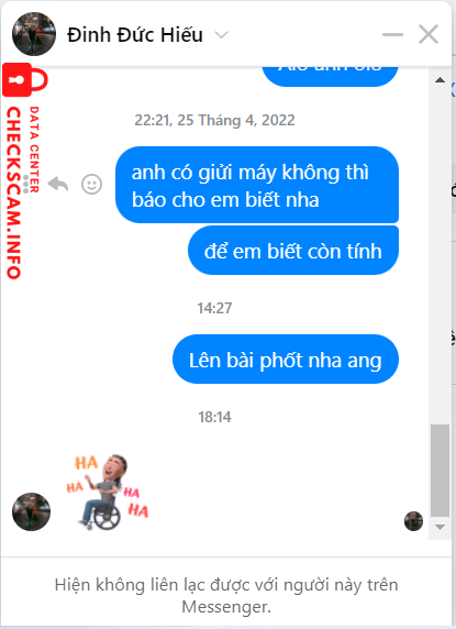 Προειδοποίηση Απατεώνα: DINH DUC HIEU Αναφέρθηκε: November 16, 2024 Πληροφορίες Απατεώνα Πλήρες Όνομα: DINH DUC HIEU Πύλη Πληρωμής: vetcombank Λογαριασμός Πληρωμής: 9365452904 Κατηγορία: Απάτες αγοράς Πηγή: Checkscam Αρχεία Αποδεικτικών Περιγραφή Αναφοράς kêu đặt cọc mua máy ảnh rồi block Σχόλια Το σχόλιό σας Προσθήκη Σχολίου Δεν υπάρχουν ακόμη σχόλια. Γίνετε ο πρώτος που θα μοιραστεί την εμπειρία του με αυτόν τον απατεώνα.