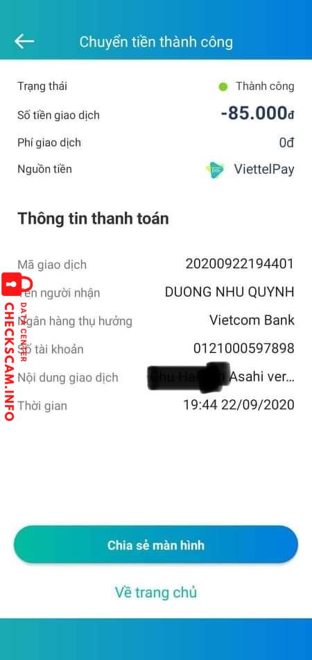 Hồi t8 năm 2020 t có ck cho nhỏ này 85k để share cạc bo góc Asahi.Xong chờ mãi không thấy thông tin ship hàng gì t mới ib hỏi lại thì e bảo hết slot nên ko mua đc và xin rf.Chuyện sẽ chẳng có gì đáng nói nếu như e nó ko nhây rf từ năm này qua năm khác bằng n cái lý do và cái tài khoản mà t ck cho em nó là tk đi mượn(t nghĩ là của người thân).Hồi sau t cáu quá block con wỷ đó nên ko sao chép đc cái link fb,xong lại trùng lúc t chuẩn bị thi tốt nghiệp nữa rồi quên phốt em nó luôn?