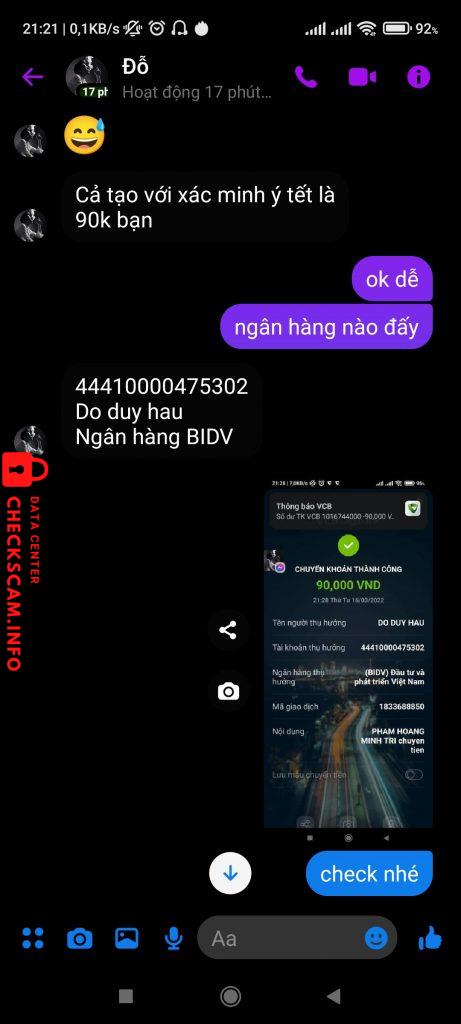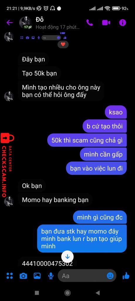 Προειδοποίηση Απατεώνα: Hậu đỗ Αναφέρθηκε: November 16, 2024 Πληροφορίες Απατεώνα Πλήρες Όνομα: Hậu đỗ Πύλη Πληρωμής: Bidv Λογαριασμός Πληρωμής: 44410000475302 Κατηγορία: Απάτες αγοράς Πηγή: Checkscam Αρχεία Αποδεικτικών Περιγραφή Αναφοράς Lừa đảo bán tài khoản QQ , bank tiền xong mất hút Σχόλια Το σχόλιό σας Προσθήκη Σχολίου Δεν υπάρχουν ακόμη σχόλια. Γίνετε ο πρώτος που θα μοιραστεί την εμπειρία του με αυτόν τον απατεώνα.