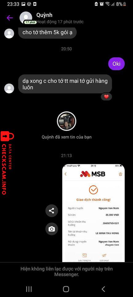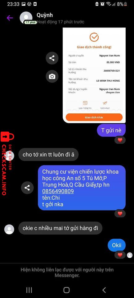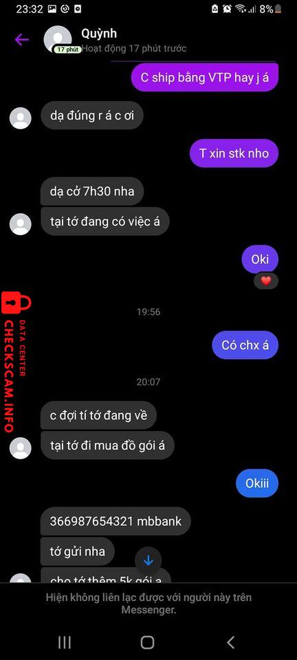 Προειδοποίηση Απατεώνα: le minh thu hong Αναφέρθηκε: November 16, 2024 Πληροφορίες Απατεώνα Πλήρες Όνομα: le minh thu hong Πύλη Πληρωμής: MB BANK Λογαριασμός Πληρωμής: 366987654321 Κατηγορία: Απάτες αγοράς Πηγή: Checkscam Αρχεία Αποδεικτικών Περιγραφή Αναφοράς Chi Quỳnh hay còn gọi là Trần Tú, Hinata Sugi, scammer cực xịn quay vid có nametag cho buyer, đã scam nhiều lần. Σχόλια Το σχόλιό σας Προσθήκη Σχολίου Δεν υπάρχουν ακόμη σχόλια. Γίνετε ο πρώτος που θα μοιραστεί την εμπειρία του με αυτόν τον απατεώνα.