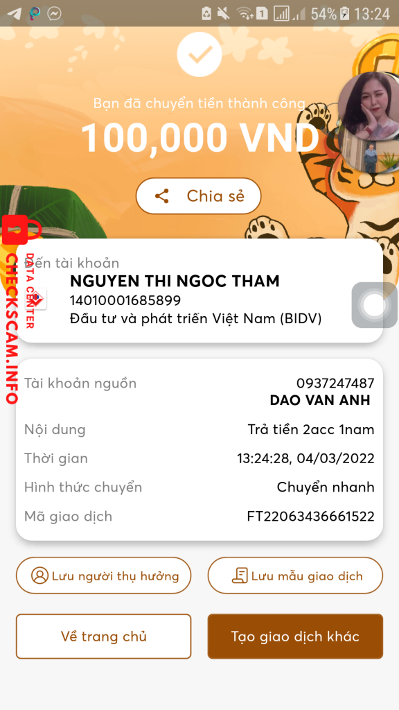 Προειδοποίηση Απατεώνα: NGUYEN THI NGOC THAM