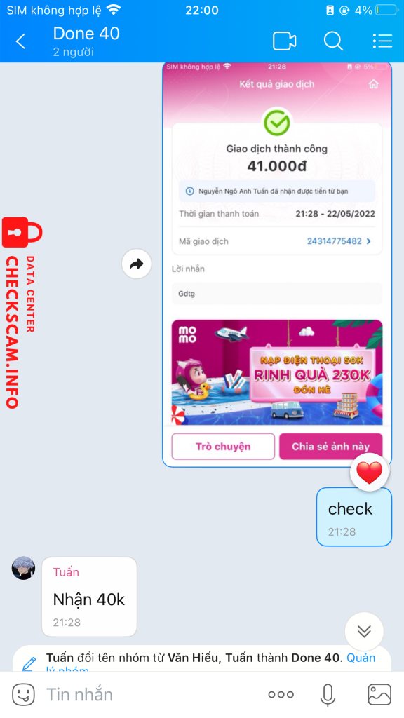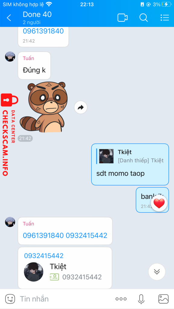 Προειδοποίηση Απατεώνα: Tuấn Αναφέρθηκε: November 16, 2024 Πληροφορίες Απατεώνα Πλήρες Όνομα: Tuấn Αριθμός Τηλεφώνου: 0978927447 Πύλη Πληρωμής: Momo Λογαριασμός Πληρωμής: 0978927447 Κατηγορία: Απάτες αγοράς Πηγή: Checkscam Αρχεία Αποδεικτικών Περιγραφή Αναφοράς scam 40k Σχόλια Το σχόλιό σας Προσθήκη Σχολίου Δεν υπάρχουν ακόμη σχόλια. Γίνετε ο πρώτος που θα μοιραστεί την εμπειρία του με αυτόν τον απατεώνα.