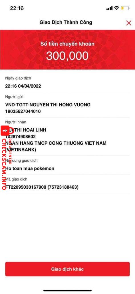 Alerto sa Scammer: Bui Thi Hoai Linh