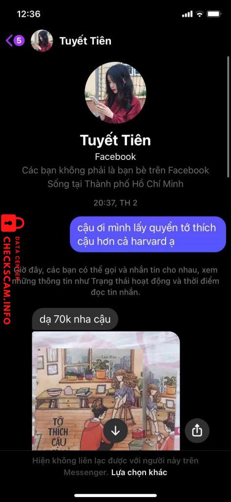 Do mình đang cần sách nên khi mình thấy bạn này cmt có nên mình cũng đã tin tưởng mua.Lần đầu mình mua ko nghĩ lại bị scam í?,mình ko nghĩ bạn lấy hình của người khác đâu ạ vì mình cũng dễ tin lắm.Lúc mình vào xem trang cá nhân thấy bạn không để thông tin gì hết mình cũng nghi ạ, nhưng mà vẫn cắn răng mua vì còn mình bạn ấy còn thôi ấy.Bạn nói sau khi chuyển khoản bạn sẽ đi gói hàng rồi mai sẽ giao cho mình.Qua hôm sau thì mình lướt thông báo chỗ fb thì ko thấy cmt bạn rep mình nữa thế là mình lận đận vào ib bạn nhưng bạn đã block mình:)).Và mình còn lấy acc phụ để đi tìm lại nick của bạn ấy và mình bấm vào nhóm bạn đó tham gia thì thấy bạn còn cmt vài cái kiểu như mình có sách cậu ib mình nha thế là mình lấy acc đó rep cmt chị khách kia nói là bạn scam đó thì một hồi sau chị vào ib mình và nói là chị hình như cũng bị lừa rồi nhưng mà chị lại hên hơn mình vì chị kêu bạn ship cod chị sẽ trả gấp đôi nhưng mà bạn lại không chịu,thế là chị nói chị chỉ cọc 20k trước thôi và bạn còn kêu chị chuyển khoản hết nữa chứ ko cho cọc nhưng chị ko chịu nên bạn này chỉ có thể lừa đc tiền cọc thôi.Chị nói nếu mình không ib chị thì chị vẫn còn tin lời bạn này ấy