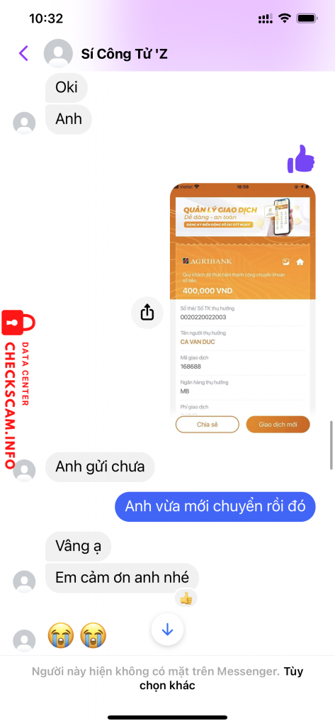 Kẻ này chuyên hack facebook người khác. Sau đó nhắn tin cho các người bạn của nạn nhân nói dối cần tiền xe về quê, ốm đau để ngay lập tức chuyển khoản cho nó. Số tài khoản của nó 0020220022003 MB Bank