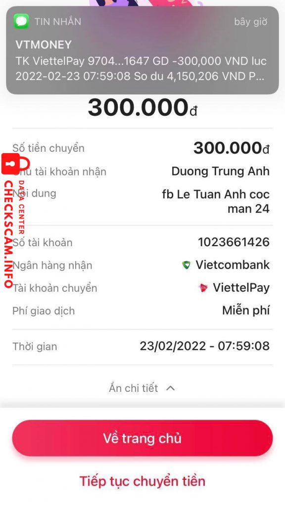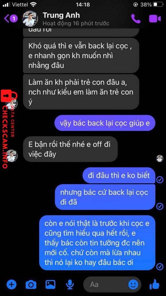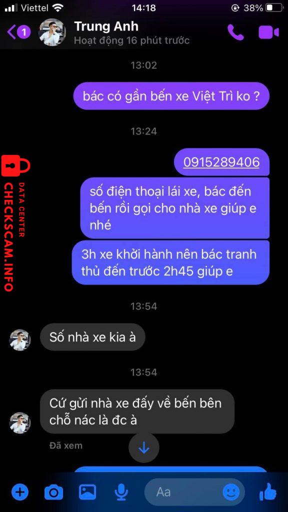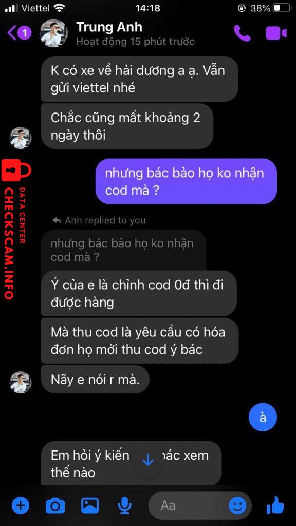 Hôm qua 22/2/2022 e có thấy fb Trung Anh ( https://www.facebook.com/profile.php?id=100062399131693 ) đăng bài bán màn hình samsung 24inch giá 1tr8, sau khi thoả thuận giá cả và đề nghị mình cọc trước 300k tiền hàng thì viện đủ thứ lý do. Đầu tiên là bảo bên Viettel post không nhận COD cho đơn hàng là màn hình, mình có đề nghị là cho mình gặp nhân viên bưu cục để mình nói chuyện thì lại nói là đi đón con. Tiếp nữa là bảo mình chuyển hàng bằng xe khách qua nhà xe Tiến Đoàn, và yêu cầu mình chuyển toàn bộ số tiền hàng còn lại rồi mới ra bến xe. Cảm thấy có vấn đề nên mình có yêu cầu nhà xe là nhận được hàng, kiểm tra xong mới đưa tiền, và mình cũng có gọi lại cho thanh niên Trung Anh để xác nhận là tiền đã chuyển trước cho bên giao vận là lái xe Tiến Đoàn, chỉ cần mang hàng ra và họ xác nhận đúng với ảnh hàng đã gửi cho lái xe là sẽ nhận tiền luôn tại bến xe mà ko phải đợi. Sau đó thấy không lừa được nữa, nên thanh niên nói chuyện rất là cùn, bảo mình trẻ con, và có nói back lại tiền cọc. Nhưng khi mình yêu cầu back lại tiền cọc thì thanh niên lại lý do bận việc rồi chuồn mất. Mình có tìm thông tin sđt trên fb thì có thêm 1 bài phốt nữa của bác Nguyễn Nam cũng bị lừa với thủ đoạn bán lô màn hình. Chính thức xác nhận thanh niên này lừa đảo. Thủ đoạn đó là sẽ đăng bài bán 1 lô chuột và bàn phím, nhưng sẽ không bao giờ có ảnh hoặc video test hàng trực tiếp, viện lý do là dịch nên không ở cửa hàng. Sau khi lừa được người chuyển cọc sẽ lập tức xoá bài đăng và tìm cách moi nốt số tiền còn lại. Nếu không moi được sẽ chặn nick fb để không nhìn được tin nhắn.