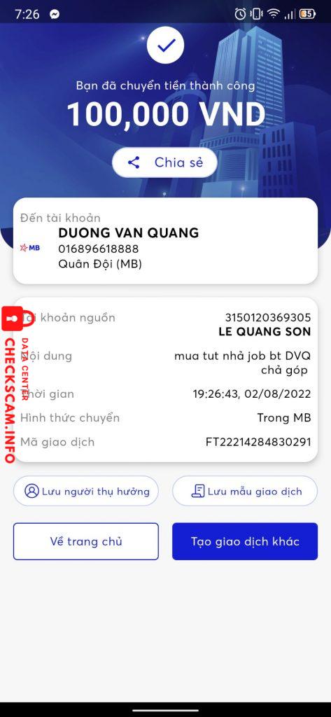 Alerto sa Scammer: DUONG VAN QUANG