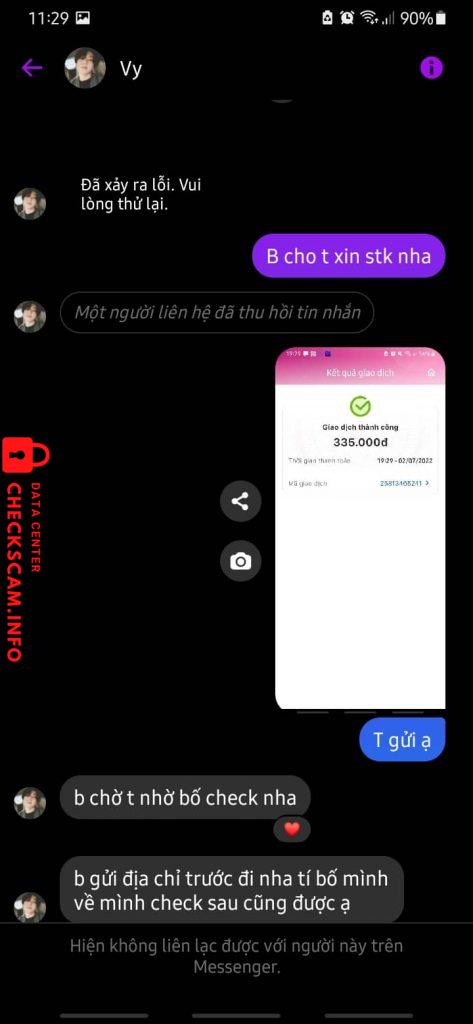 Alerto sa Scammer: LE HOAI BAO Naiulat na: November 16, 2024 Impormasyon ng Scammer Buong Pangalan: LE HOAI BAO Payment Gate: MB bank Account ng Pagbabayad: 45566789999 Kategorya: Mga panloloko sa marketplace Pinagmulan: Checkscam Mga File ng Ebidensya Paglalarawan ng Ulat đặt avt và lấy bài check lg của ng khác để scam Mga Komento Ang iyong komento Magdagdag ng Komento Wala pang mga komento. Maging una sa pagbabahagi ng iyong karanasan sa scammer na ito.