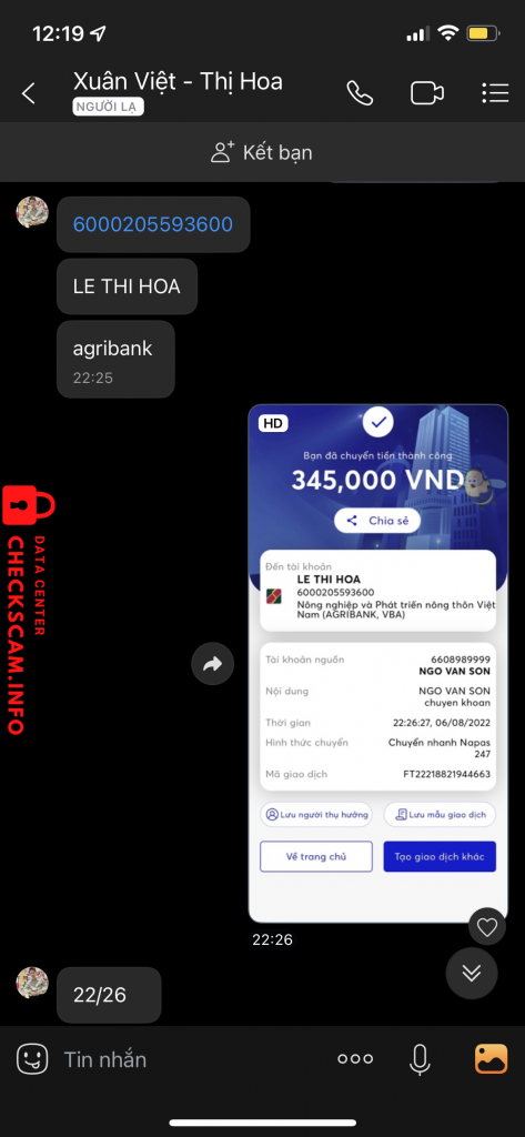 Alerto sa Scammer: LE THI HOA