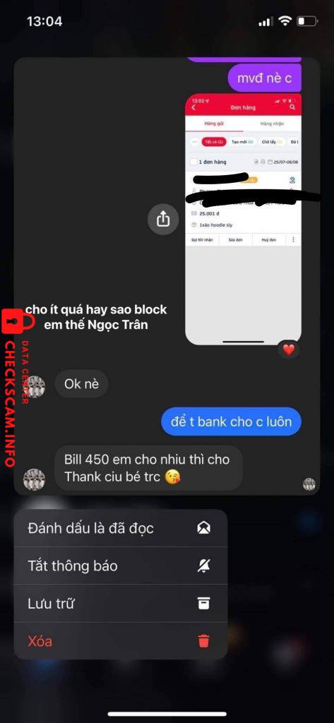 ban đầu xem wall thấy khá ut nên mình cũng gd, bình thường pass xong sold mới lấy phí, nhưng bạn í nói lấy phí trước cho sold nhanh, thì mình cũng có ck phí cho bạn í, nma xong là nó xóa tt nó luôn, bạn bảo sold trước 2h rồi t ib lấy tt, nma sold sớm, t hỏi in4 bạn mua thì k cho ( hình 4 ), t cũng hơi nghi nên lúc lấy dc bạn mua thì t có check sđt lun, đúng tên nhé, sold xong thì b ấy có xin cho thêm, t cũng thấy bth th, xong lúc b nt cho bạn mua á ( hình 5) t ib hỏi thì trả lời 1 nẻo, xong t hỏi lại thì bảo để ib, rồi block t luôn ?????