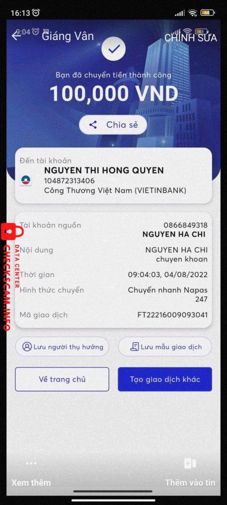 Alerto sa Scammer: Nguyễn thị hồng quyên ( giáng vân)