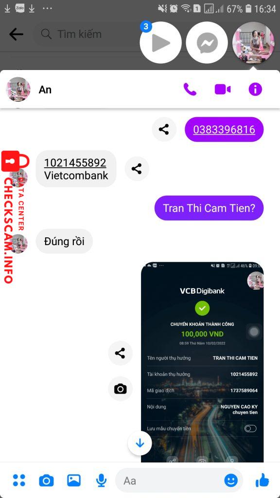 Alerto sa Scammer: Trần Thị Cẩm Tiên