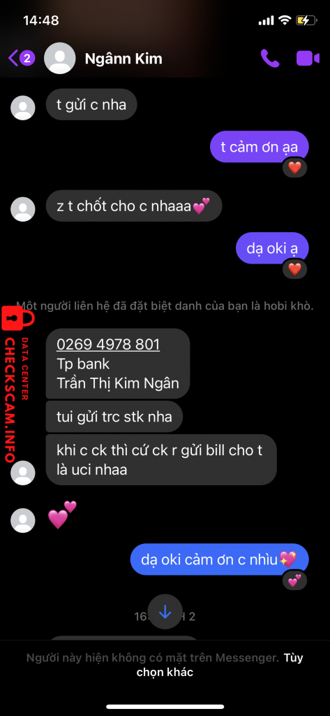 Alerto sa Scammer: Trần Thị Kim Ngân