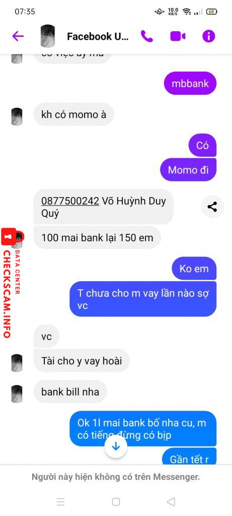 Alerto sa Scammer: Võ Huỳnh Duy Quý