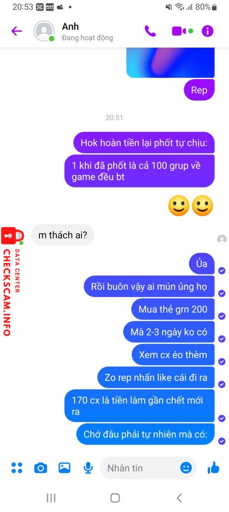 Alerte d'arnaqueur: Anh Ngọc Signalé: November 16, 2024 Informations sur l'arnaqueur Nom complet: Anh Ngọc Passerelle de paiement: Mb Compte de paiement: 7199999998 Catégorie: Arnaques de marketplace Source: Checkscam Fichiers de preuves Description du rapport Mua thẻ garena 200k bank tuền qua ròi. Bên kia hok chịu trả Commentaires Votre commentaire Ajouter un commentaire Pas encore de commentaires. Soyez le premier à partager votre expérience avec cet arnaqueur.