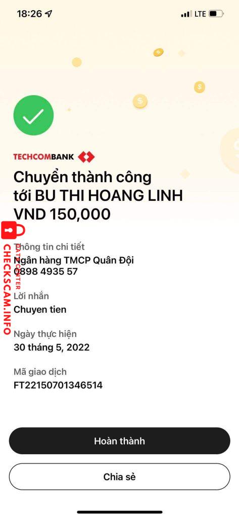 Alerte d'arnaqueur: BU THI HOANG LINH