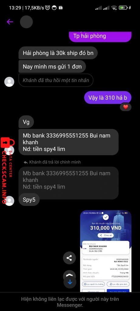 Alerte d'arnaqueur: Bùi khánh nam