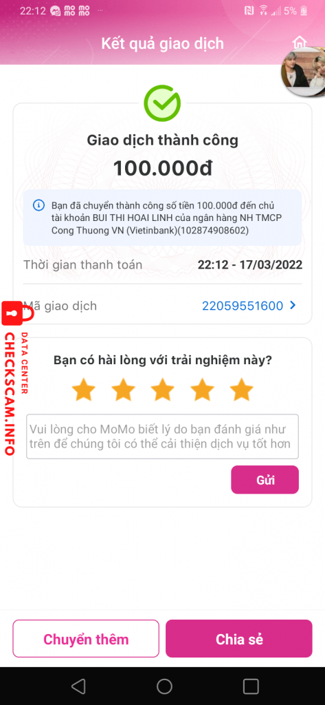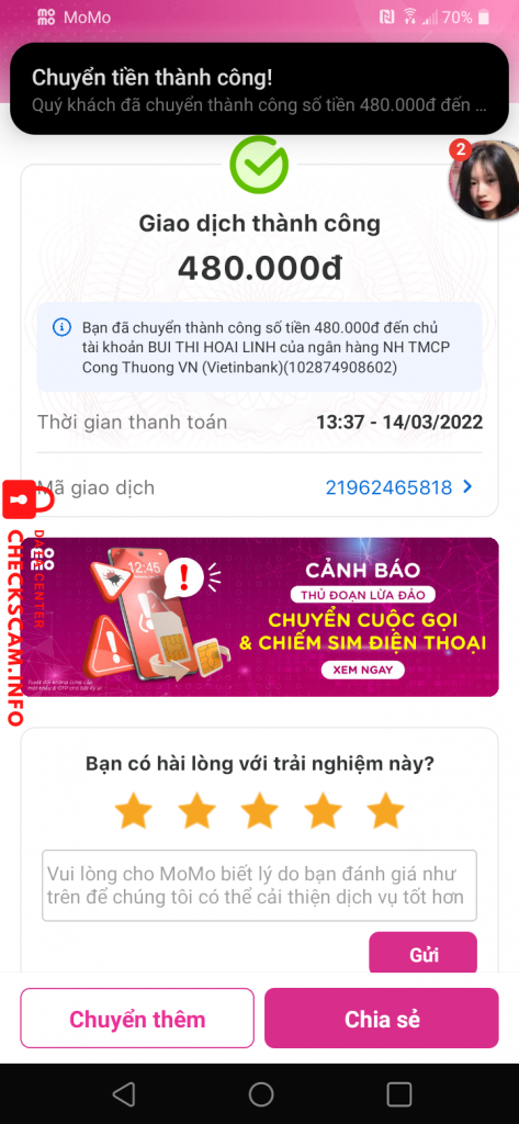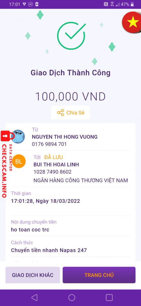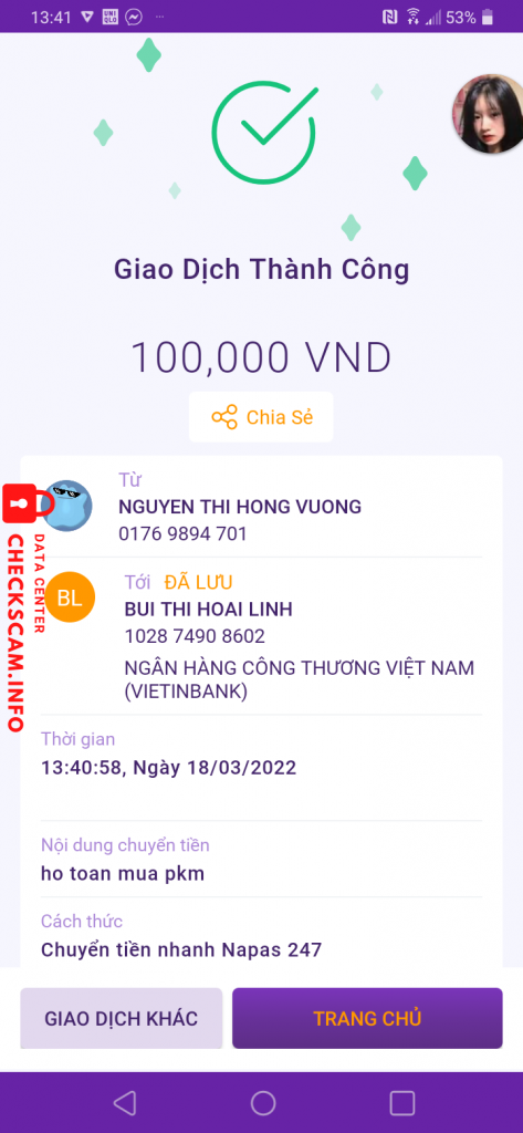 Alerte d'arnaqueur: BUI THI HOAI LINH