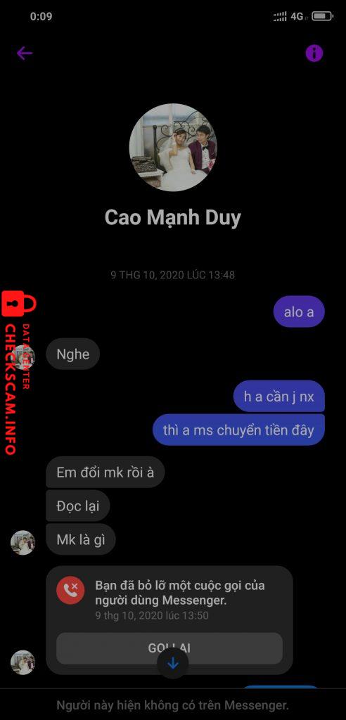 Alerte d'arnaqueur: Cao Mạnh Duy