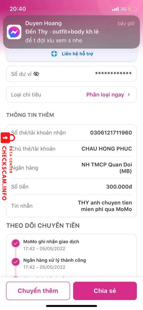 Alerte d'arnaqueur: Chau hong phuc
