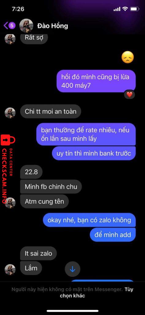 Alerte d'arnaqueur: Đào Thị Thu Hồng