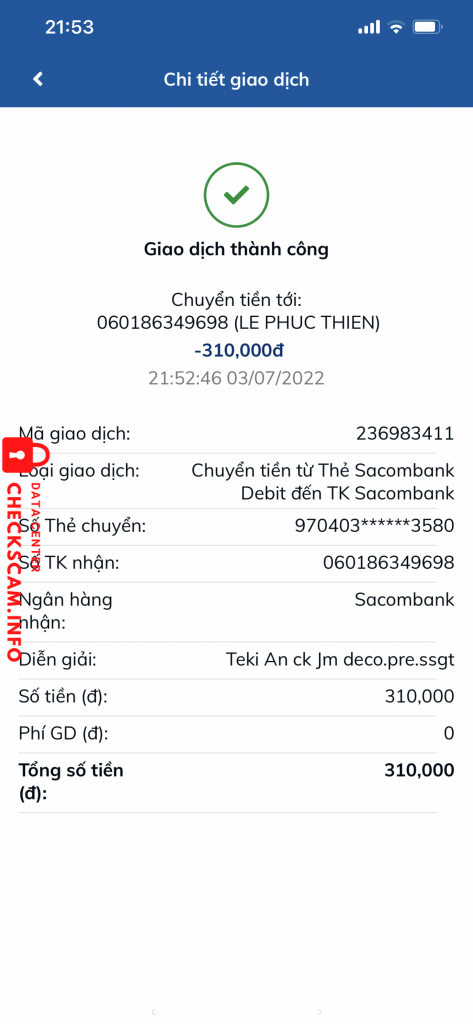 Alerte d'arnaqueur: DAO TRAN KHANH LINH