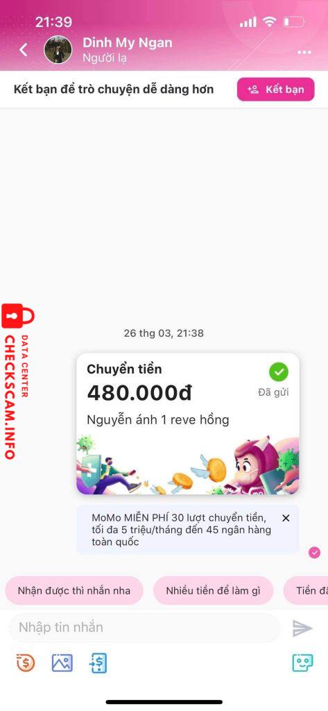 Alerte d'arnaqueur: Dinh My Ngan