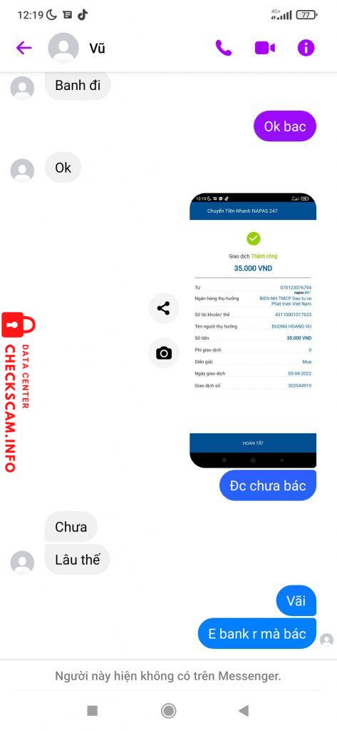 Alerte d'arnaqueur: DUONG HOANG VU