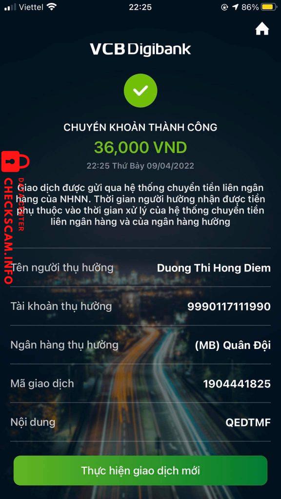 Alerte d'arnaqueur: DUONG THI HONG DIEM