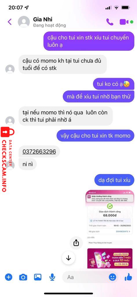 Alerte d'arnaqueur: Gia Nhi (Lê Thị Thanh Tâm)
