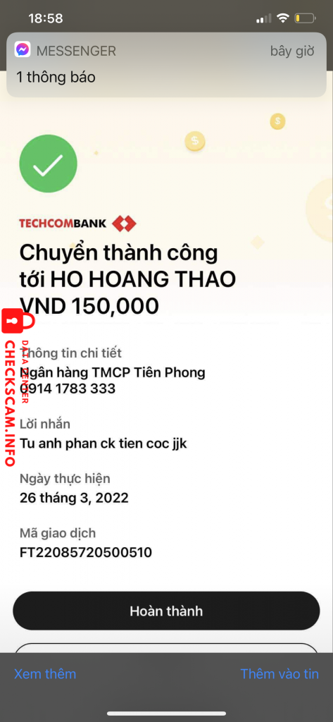 Alerte d'arnaqueur: HO HOANG THAO