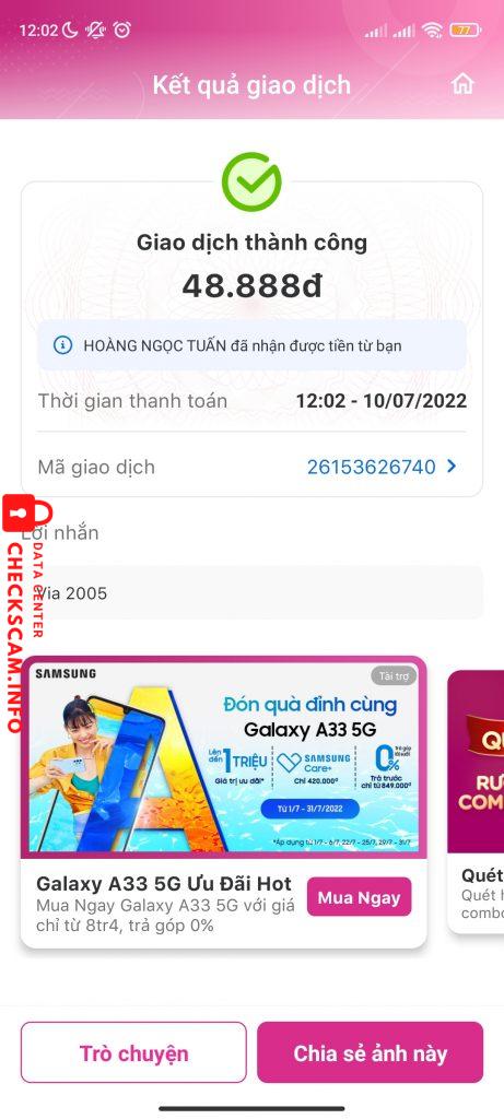 Alerte d'arnaqueur: Hoàng Ngọc Tuấn