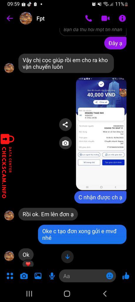 Alerte d'arnaqueur: Hoàng Thảo Nhi