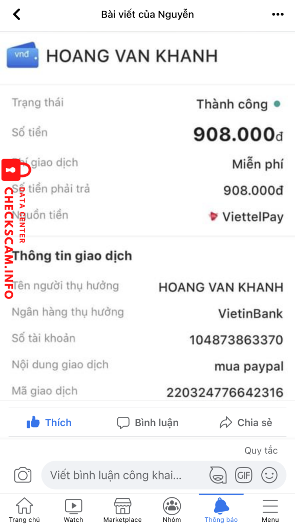 Alerte d'arnaqueur: HOÀNG VĂN KHANH