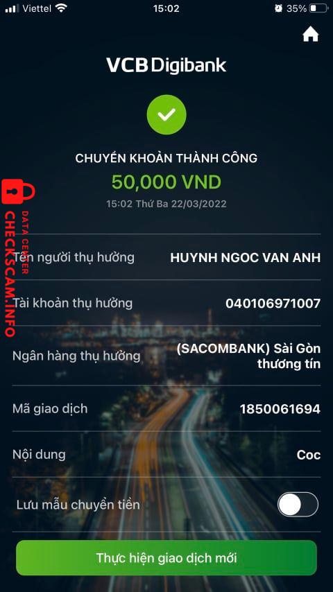 Alerte d'arnaqueur: HUYNH NGOC VAN ANH