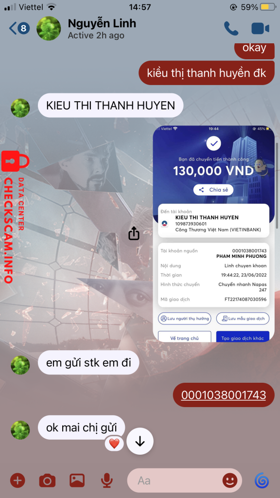 Alerte d'arnaqueur: KIEU THI THANH HUYEN