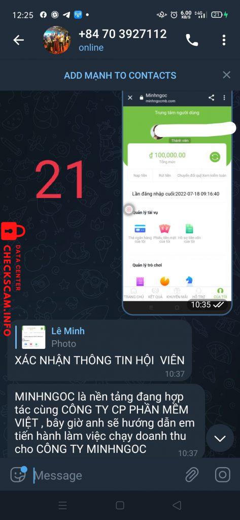 Alerte d'arnaqueur: LE HA THUY VY – Minhngocmb.com