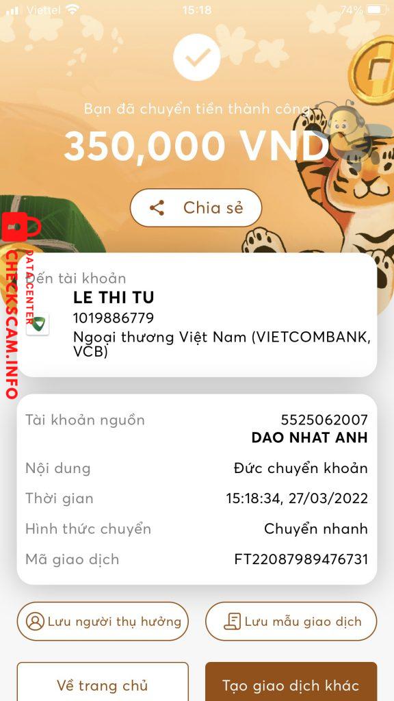 Alerte d'arnaqueur: Lê Thị Tú