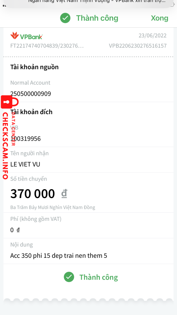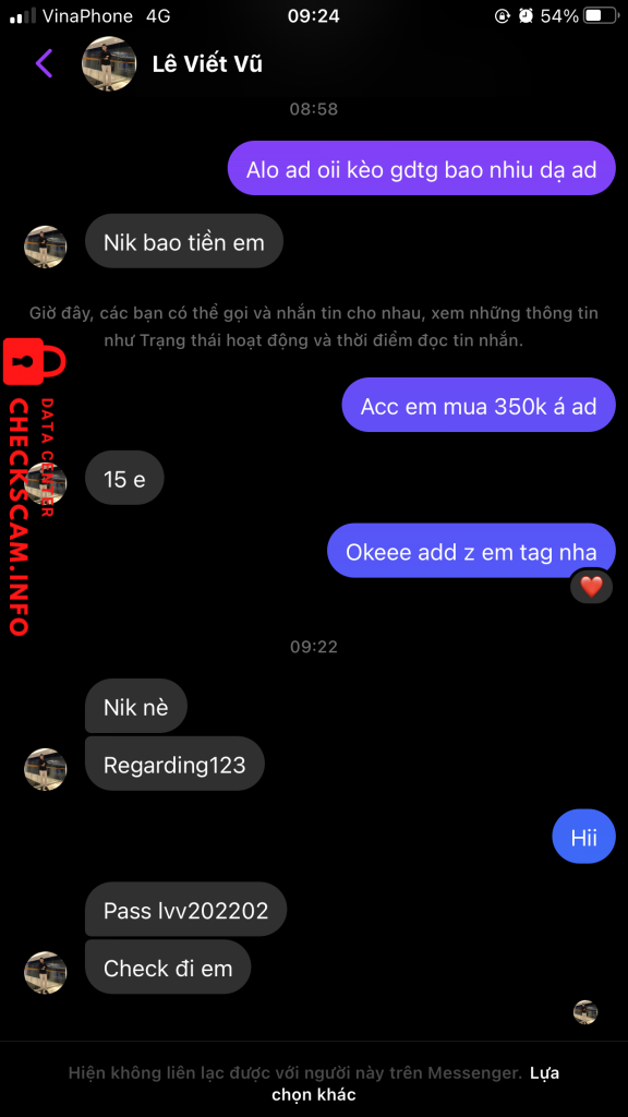 Alerte d'arnaqueur: Le Viet Vu Signalé: November 16, 2024 Informations sur l'arnaqueur Nom complet: Le Viet Vu Passerelle de paiement: VIB Compte de paiement: 100319956 Catégorie: Arnaques de marketplace Source: Checkscam Fichiers de preuves Description du rapport Commentaires Votre commentaire Ajouter un commentaire Pas encore de commentaires. Soyez le premier à partager votre expérience avec cet arnaqueur.