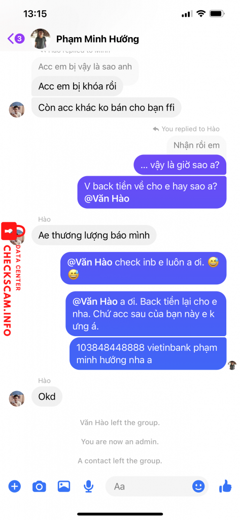 Alerte d'arnaqueur: Lương Văn Hào