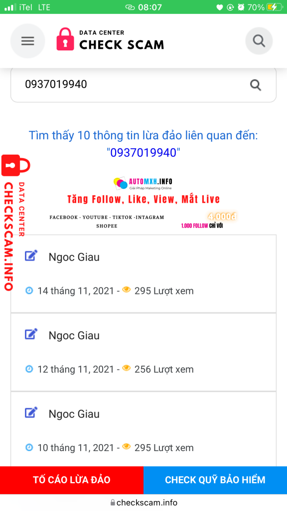Alerte d'arnaqueur: Ngoc Giau Signalé: November 16, 2024 Informations sur l'arnaqueur Nom complet: Ngoc Giau Passerelle de paiement: MB Bank Compte de paiement: 0937019940 Catégorie: Arnaques de marketplace Source: Checkscam Fichiers de preuves Description du rapport Ăn xin online Commentaires Votre commentaire Ajouter un commentaire Pas encore de commentaires. Soyez le premier à partager votre expérience avec cet arnaqueur.