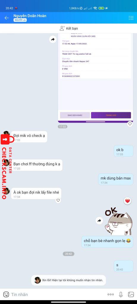 Alerte d'arnaqueur: Nguyễn Doãn Hoàn