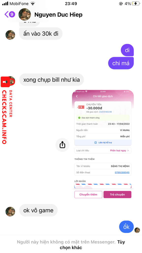 Alerte d'arnaqueur: nguyễn đức hiệp