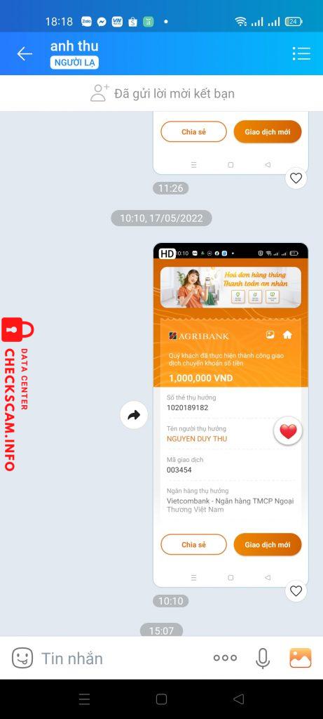 Alerte d'arnaqueur: NGUYEN DUY THU