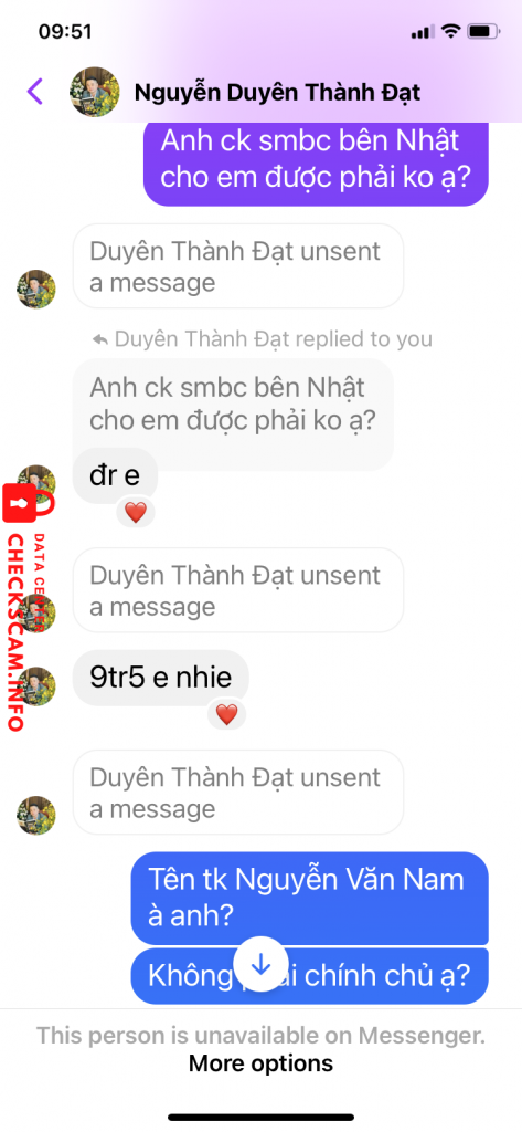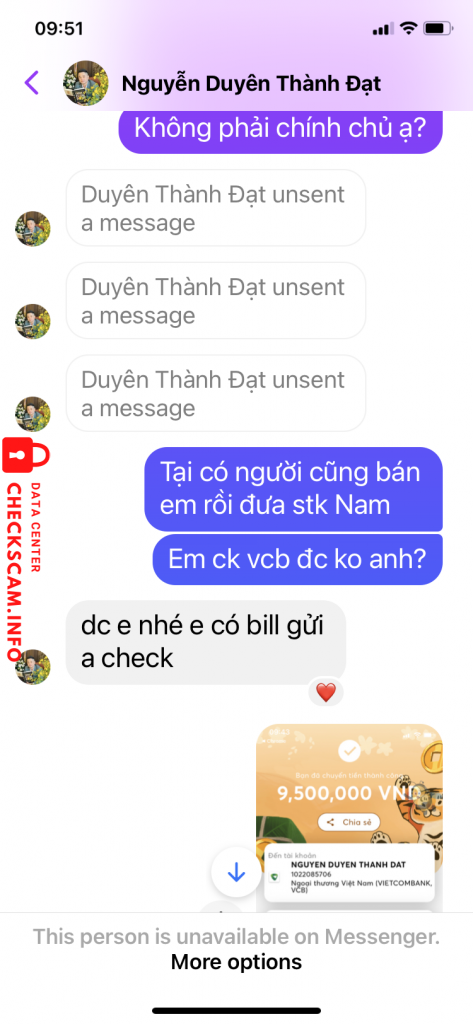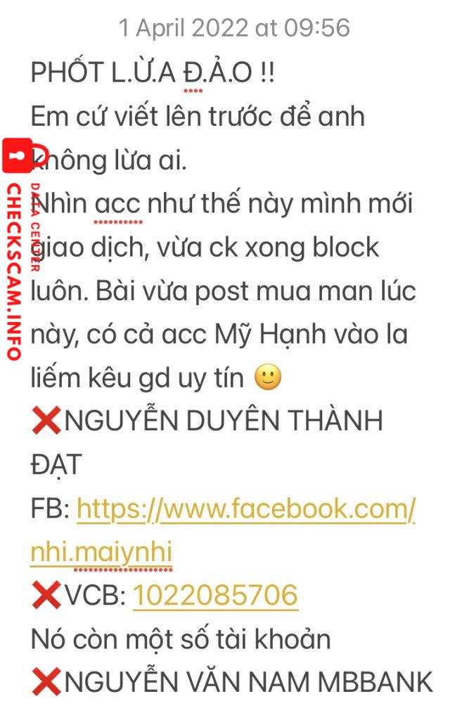 Alerte d'arnaqueur: Nguyen Duyen Thanh Dat
