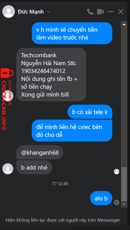 Alerte d'arnaqueur: Nguyễn Hải Nam