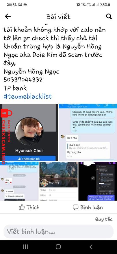 Alerte d'arnaqueur: Nguyễn Hồng Ngọc