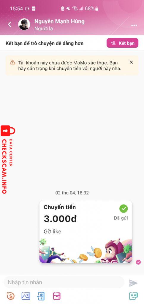 Alerte d'arnaqueur: Nguyễn Mạnh Hùng