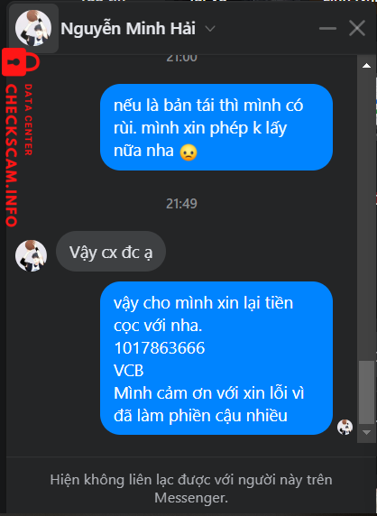 Alerte d'arnaqueur: Nguyễn Minh Hải