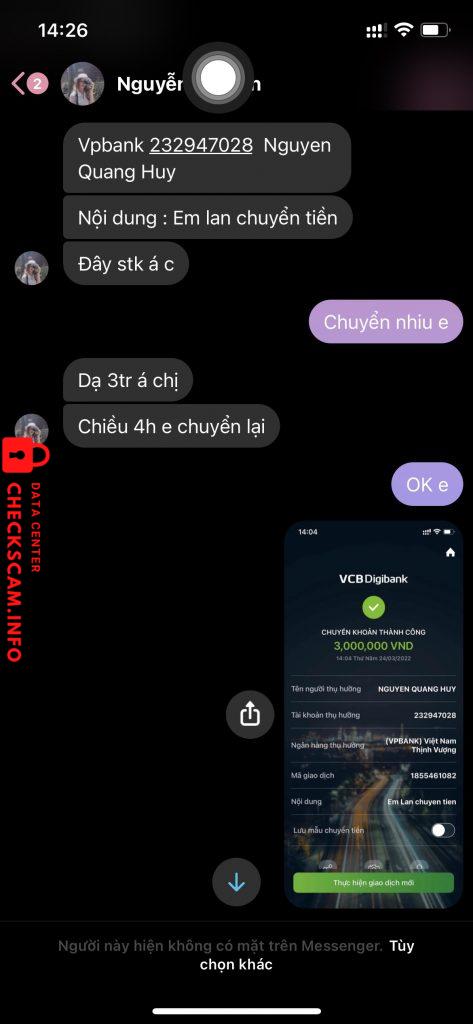 Alerte d'arnaqueur: Nguyen Quang Huy